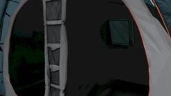 Ben je nou helemaal geen handig harrie? Geen paniek want kamperen kun je leren. Deze tent is namelijk heel eenvoudig op te zetten en laat zich ook compact verpakken. Schuif de stokken in elkaar en bevestig deze eenvoudig met de haken aan het tentzeil. Vervolgens kun je het buitenzeil eroverheen bevestigen en alles vastzetten. Zo gepiept dus! De tent heeft een extra ruime ingang met een ruime voortent. Hierin kun je voldoende bagage kwijt en eventueel koken bij slecht weer. Daarnaast heeft de binnentent handige vakken om je spullen in te ordenen. Mocht je behoefte hebben aan frisse lucht, dan is dit te regelen met de ventilatie luiken die tevens tegen regen zijn beschermd.
